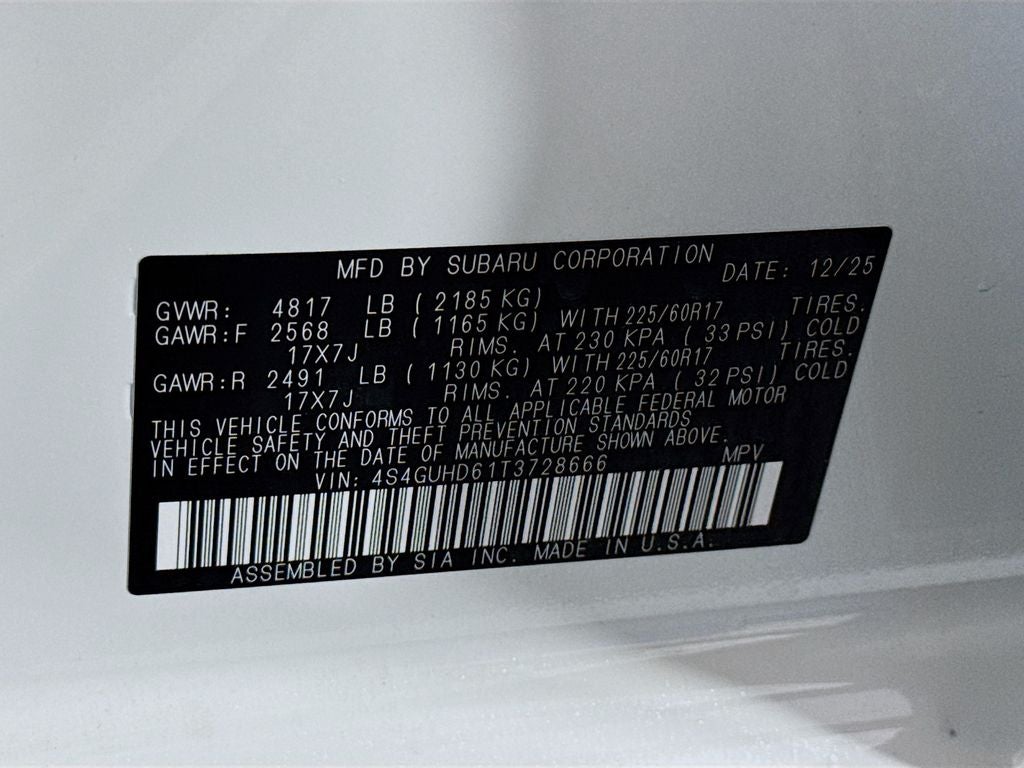 - Tires: 225/60R17 99H All-Season