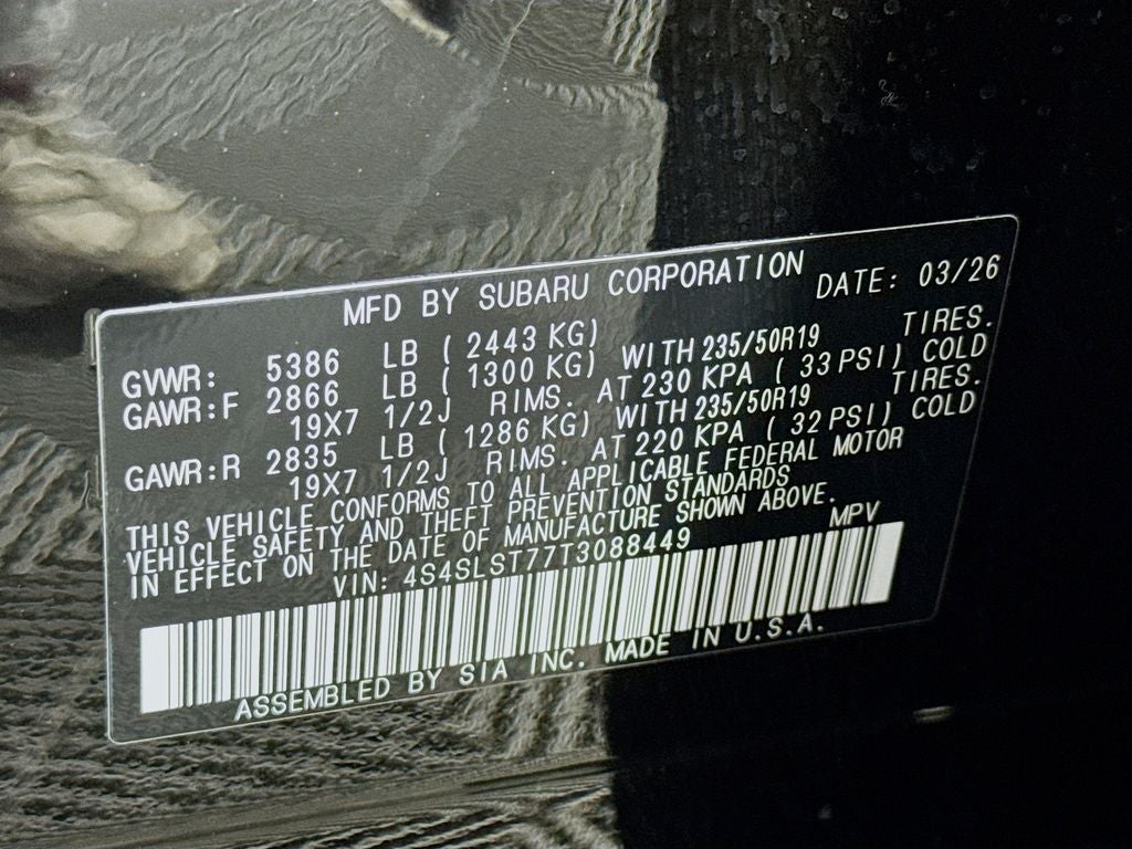 - Wheels: 19" x 7.5 J Dark Gray Aluminum-Alloy -inc: machine finish and black wheel center cap w/Subaru 6 star logo