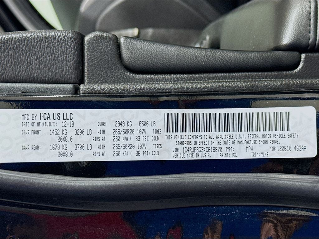 4WD, 3.45 Rear Axle Ratio, 6 Speakers, 8.4 Touchscreen Display, Apple CarPlay/Android Auto, Bi-Xenon High-Intensity Discharge Headlamps, Body Color Door Handles, Body Color Fascias w/Granite Accents, Body Color Sill Extension, Dark Day Light Opening Moldings, Dark Headlamp Bezel Finish, Dark Lens Taillamps, Delete Limited Badge, Dual Dark Chrome Exhaust Tip, Dual-Pane Panoramic Sunroof, Front Bucket Seats, Front fog lights, Fully automatic headlights, Gloss Black Exterior Accents, Gloss Black Roof Rails, Granite Crystal Exterior Accents, Granite Crystal Exterior Badging, Granite Crystal/Black Grille, Heated steering wheel, Leather Trimmed Bucket Seats, Leather Trimmed Seats, LED Daytime Running Headlamps, Limited X Badge, Limited X Package, Liquid Titanium Accents, Memory seat, Navigation System, ParkView Rear Back-Up Camera, Power driver seat, Power Liftgate, Power passenger seat, Power windows, Premium Accent Claddings, Premium LED Fog Lamps, Quick Order Package 2BG Limited X, Radio: Uconnect 4C Nav w/8.4 Display, Remote keyless entry, Split folding rear seat, Sport Hood, Steering wheel mounted audio controls, Steering Wheel Mounted Shift Control, Wheels: 20 x 8.0 Granite Crystal Aluminum.