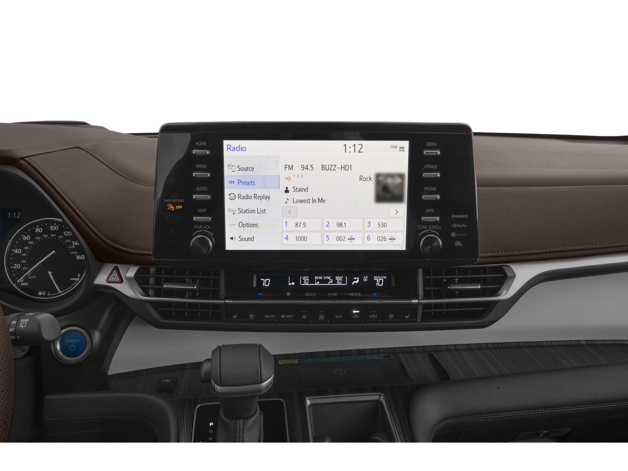 Beyond these standout amenities, the Sienna Platinum-Hybrid offers a suite of advanced technologies and creature comforts that elevate every journey. Enjoy the convenience of a Navigation System, the immersive sound of a 12-Speaker JBL Audio Multimedia System, and the comfort of Dual-Zone Automatic Climate Control. The Heads-Up Display and Power Liftgate further enhance your driving experience, while the Leather-Trimmed Seats and Heated/Ventilated Front Seats provide unparalleled luxury.